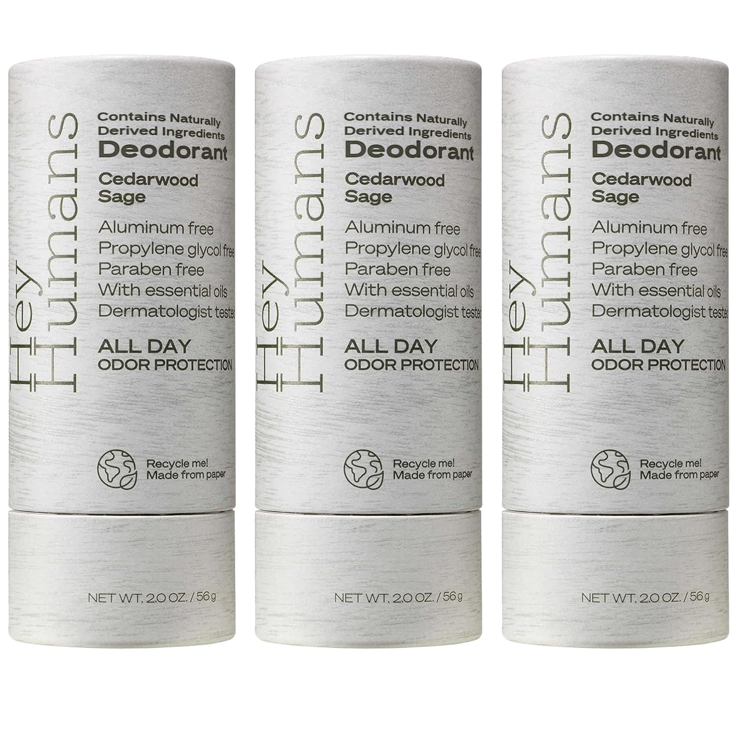 Hey Humans Deodorant, Aluminum Free Deodorant for Women and Men, Contains Naturally Derived Ingredients, All Day Odor Control, Refreshing Deodorant Essential Oils, Cedarwood Sage
