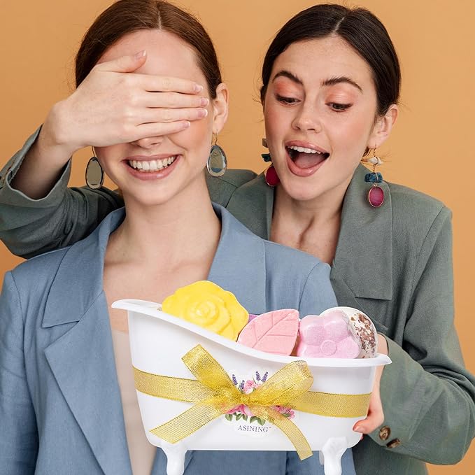 - Thoughtful Gift: Beautifully presented in a decorative basket, making it an ideal gift for any occasion. Packaged in an bath tub container, our bath bombs set makes a thoughtful gift for loved ones. Treat yourself or someone special to the ultimate spa experience at home. Whether it's for a Christmas, birthday, anniversary, or just to show you care, this set is sure to delight.