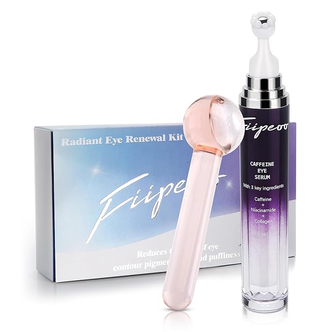 Eye Serum for Dark Circles and Puffiness, Caffeine Eye Serum Infused Collagen and Niacinamide with Ice Globe for Puffy Eyes Treatment for Women (0.5 FL OZ, Unscented)
