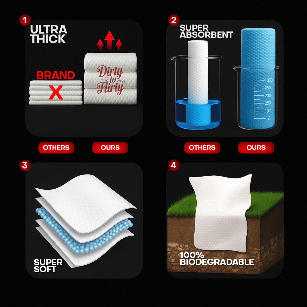 - ULTRA SOFT & GENTLE - Dirty to Flirty face towelettes are crafted to be sensitive to your skin, ensuring a luxurious spa-like experience with the softest materials. Enjoy salon-quality skincare treatments in the comfort of your own home with these indulgent towelettes.