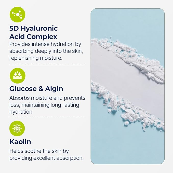 Torriden DIVE IN Modeling Mask (pack of 5) | Intensive Hydration and Cooling | 5D Hyaluronic Acid Complex, Glucose & Algin, Kaolin
