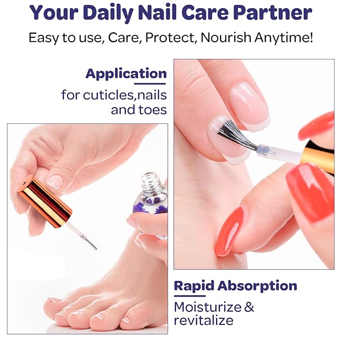 - Easy to Use: Simply brush on and massage for healthy, hydrated nails and cuticles! A simple and effective way to care for your nails and cuticles. Handy and convenient for professionals and home users alike. This unique formula nourishes and moisturises nails, providing deep care for your DIY poly nails and cuticles