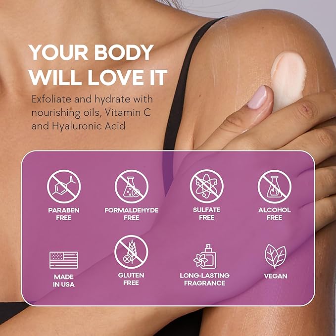 - SPA-QUALITY SKINCARE AT HOME – Indulge in a luxurious spa-like experience right in your shower. This body scrub transforms your skincare routine, helping you achieve professional-level exfoliation and hydration, so your skin stays beautifully soft and nourished.