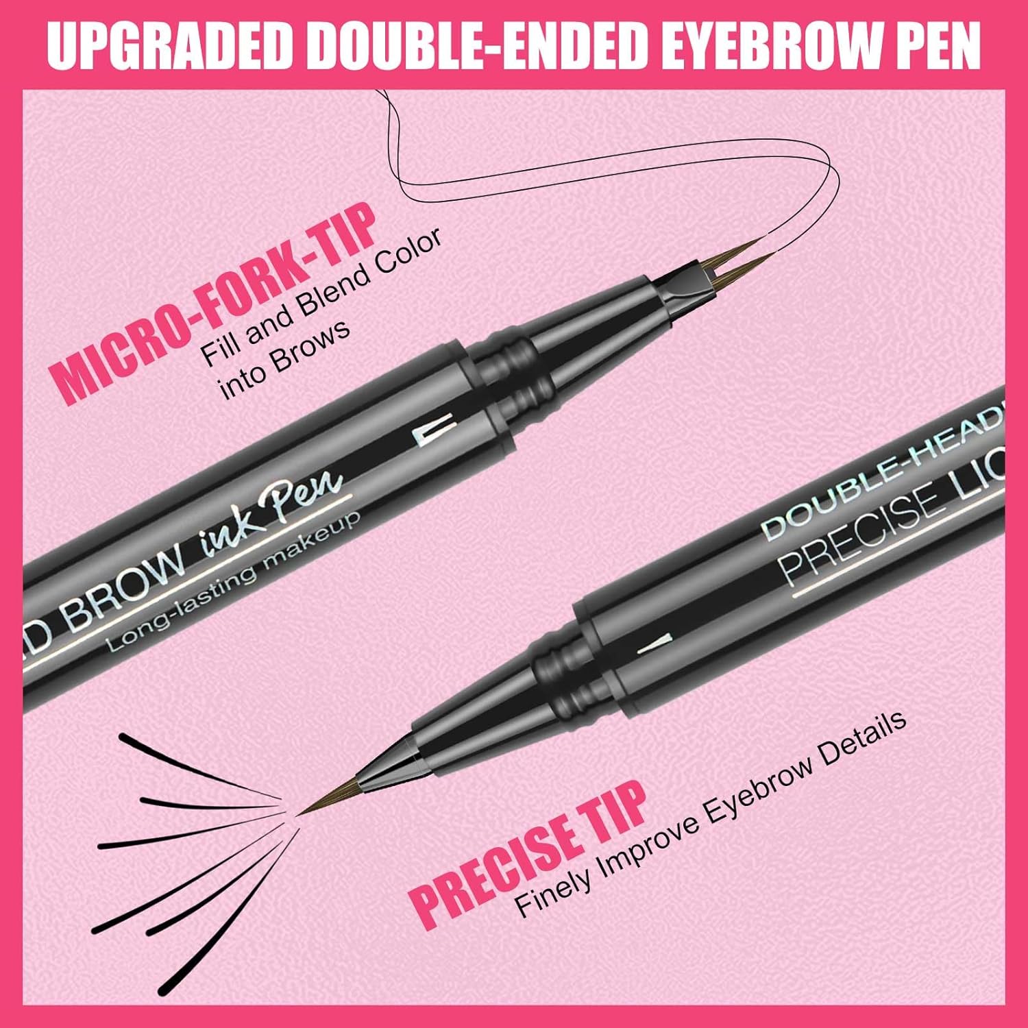 - 2-IN-1 MULTI-FUNCTION EYEBROW PEN- Say goodbye to sparse eyebrows with this magic eyebrow pen. The micro fork tip quickly fills sparse areas, blending colors into eyebrows to create natural and plump eyebrows. The precise brush tip draws the brow tail and further improve the details of the eyebrows to create 3D natural and realistic hair. You can also use the microblading eyebrow pen to draw eyeliner, eyelashes, and fill your hairline.