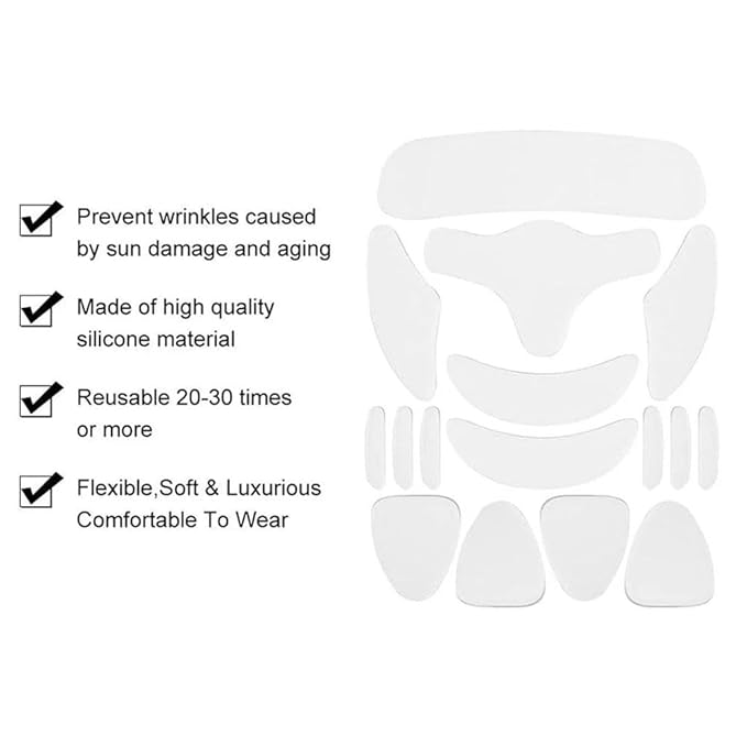 - COMPLETE COVERAGE: Full-face silicone patches designed to target multiple areas including forehead lines, crow's feet, and smile lines for comprehensive wrinkle treatment
