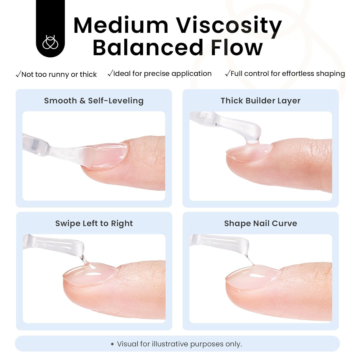 - Beginner-Friendly Self Leveling:This strengthening nail gel heas easy-to-control gel flows naturally for smooth application. Flip your finger to form a natural apex, then cure under UV&LED lamp for 60–120s