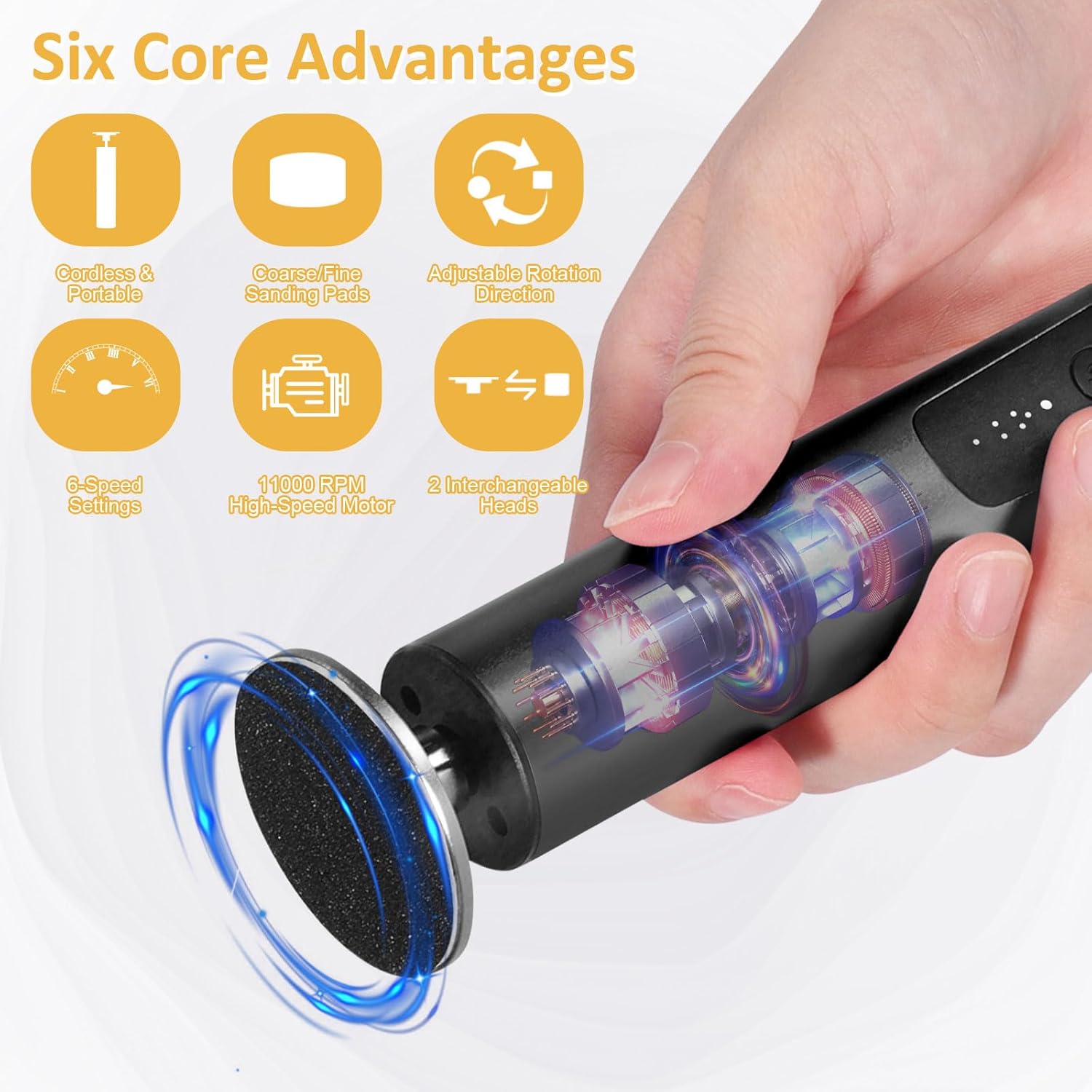 Upgraded Wireless Electric Callus Remover for Feet,6-Speed 2-in-1 Rechargeable Foot File Callus Remover with USB Charging & 3 Types of Sandpaper, Dead Skin Remover for Dry Cracked Heels,Black