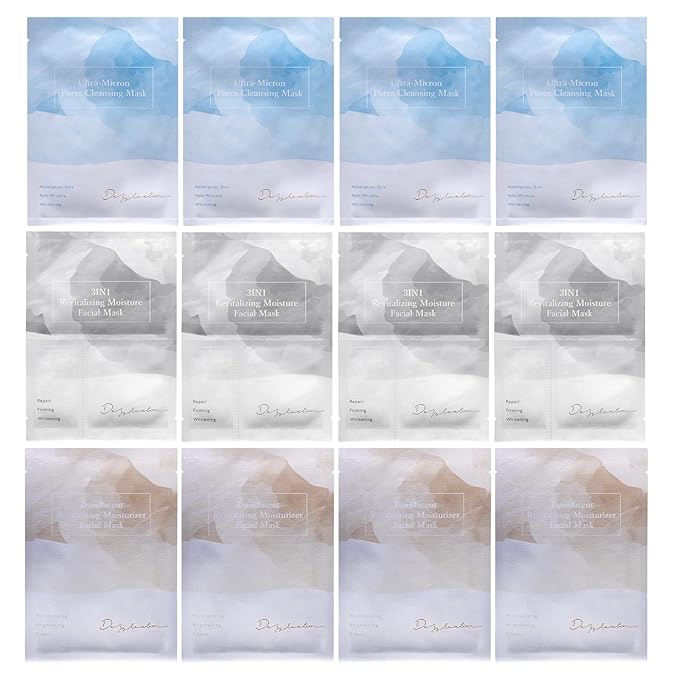Dazzelslim Face Masks for Women & Men - 12 Facial Masks with Volcanic Mud, Hyaluronic Acid, Sea Buckthorn Oil, EGF & Tranexamic Acid for Cleanses, Hydrates & Brightens, Fragrance-Free, Made in Taiwan