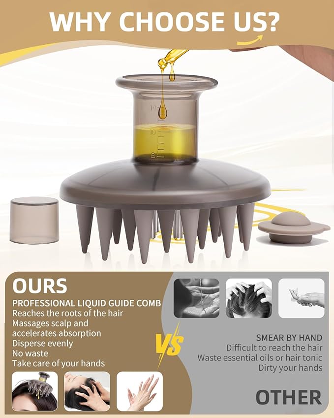 • 【Easy to Apply】With a large capacity 14ml oil compartment, simply fill the applicator with your favorite hair oil serum medicated liquid and the massage teeth effortlessly disperses the product, providing a relaxing massage experience without the need to touch the liquid with your hands.