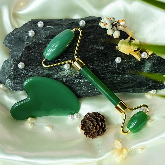 ROSELYNBOUTIQUE Gua Sha Facial Tools & Face Roller for Wrinkless Natural Skincare Tool Jade Roller Guasha Tool for Face Facial Massager (Aventurine)