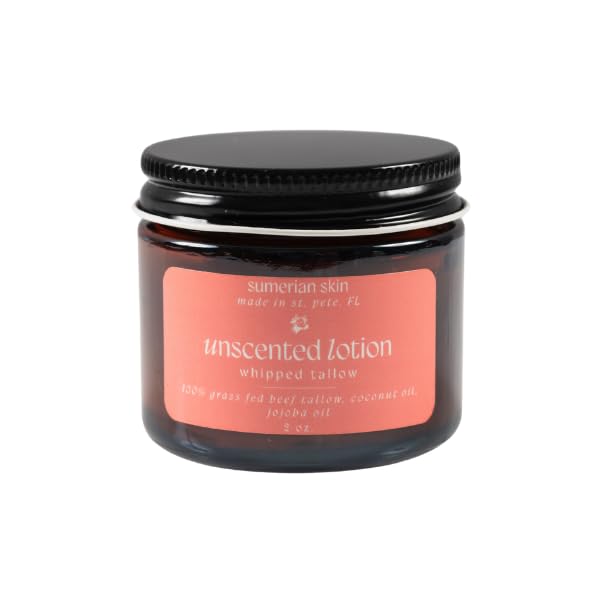 100% Grass Fed & Organic Whipped Beef Tallow Lotion - All Natural - Body + Face Mosturizer for All Skin Types