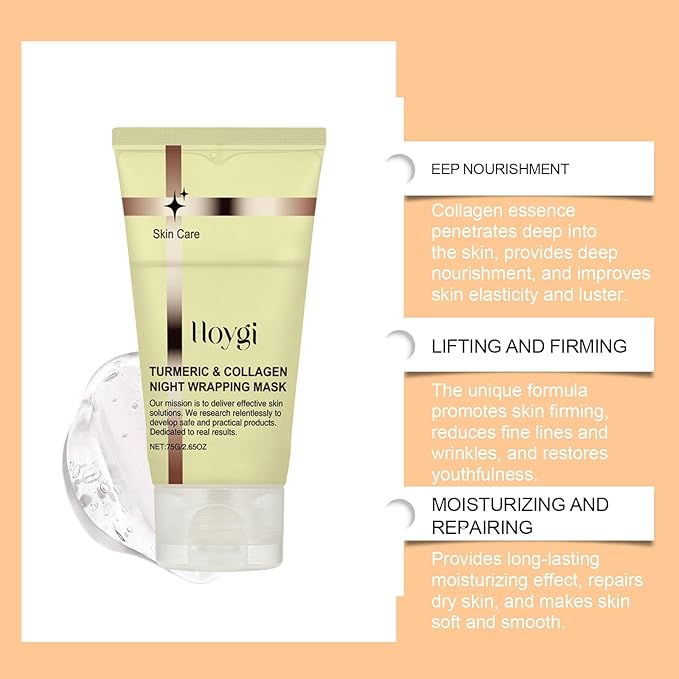 - Intense Hydration & Firmness: Infused with high-potency turmeric & collagen, this mask deeply penetrates to hydrate, reduce sagging, and revitalize dull skin, enhancing your skin's elasticity
