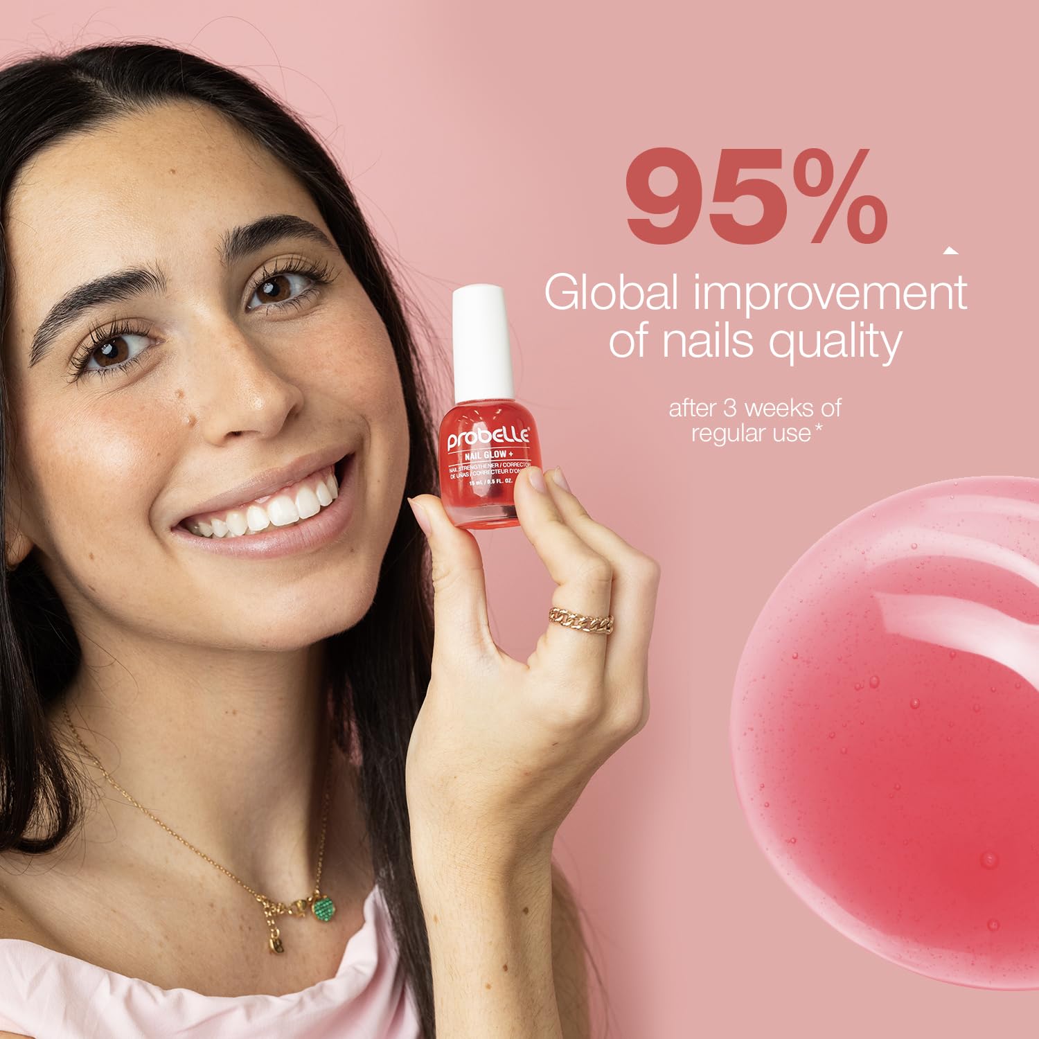 Probelle Nail Glow + Nail Strengthener and Hardener with Sheer Jelly Tint, Hard To Resist Ultra Glowy Nail Shine, Tinted Nails Strengthening Blush for Brittle, Thin, Damaged Nails 0.5 oz (Berry)