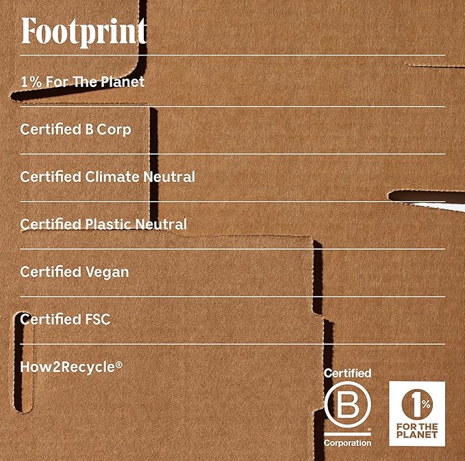 - FOOTPRINT: 100% Bio-Resin (HDPE) Bottle with mixed material pump. Free of BPA, BFA, Phthalates. The carton and insert are made with FSC-Certified, PCR Kraft Board. Certified B Corp. Certified Climate Neutral. Certified Plastic Neutral. 1% For The Planet Member