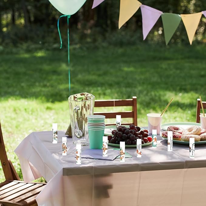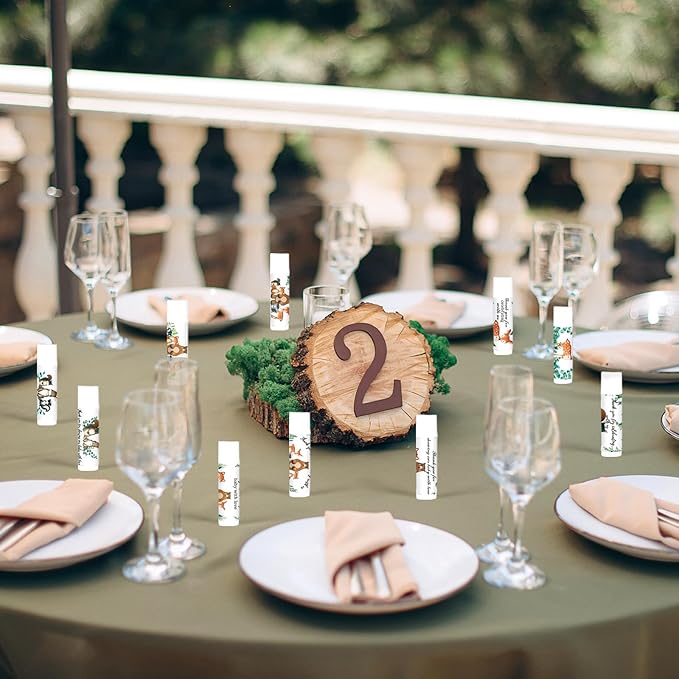 - Woodland Themed Design: Each lip care is designed with a woodland theme and features a variety of animal images: squirrels, foxes, bears, and sika deer. The vivid images perfectly blend with the baby shower theme party and are printed with the words "Thank you for celebrating with us", creating a strong party atmosphere. Everyone will remember this wonderful moment