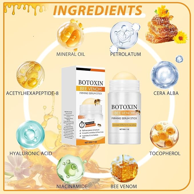 - 【Bee venom Firming Serum Stick】This Beevenom firming serum stick is like a caring skin care, can promote hydration and moisturizing, glow natural youth