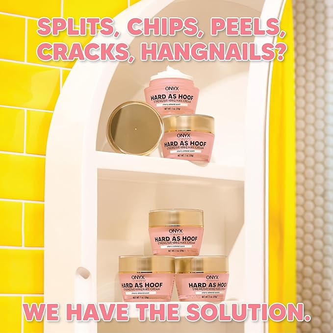 Onyx Professional Hard as Hoof Nail Strengthening Cream, Cherry Almond Scent - Nail Growth & Conditioning Cuticle Cream Stops Splits, Chips, Cracks & Strengthens Nails, 1 oz