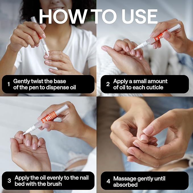- NAIL OIL FOR GROWTH AND STRENGTH – This cuticle oil pen for nails acts as a dual-action nail growth oil and nail strengthener for thin nails and growth. The precise oil applicator helps deliver cuticle oil directly where needed, promoting healthier, stronger nail regrowth.
