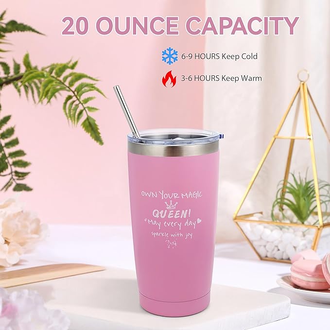 - Thoughtful 10-Piece Luxury Set: Includes 20 oz tumbler (with reusable straw, cleaning brush), bath bomb, bath salts, scented candle, moisturizing soap, bath pull, silk eye mask, pocket mirror, shower cap and floral greeting card