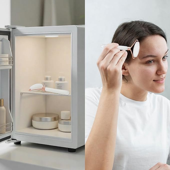 - Morning Routine Cool & Warm: Place the tools in ice water or the fridge and use as a eye depuffer roller and guadha to tighten skin and pores. Run under warm water and use warm to relax muscles as a facial lymphatic drainage tool.