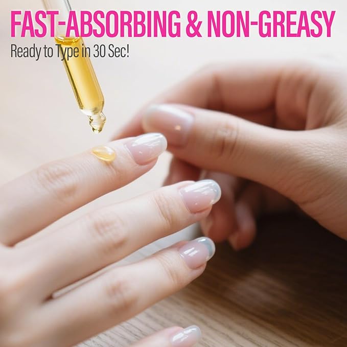 - Nail Hydration Fast Absorb Serum: This innovative water serum formula absorbs completely within 10 seconds without sticky residue. The lightweight yet concentrated essence delivers long-lasting hydration to keep nails and cuticles soft and supple. Perfect for those who dislike the greasy feel of traditional cuticle oils—use your phone or keyboard immediately after application without disruption.