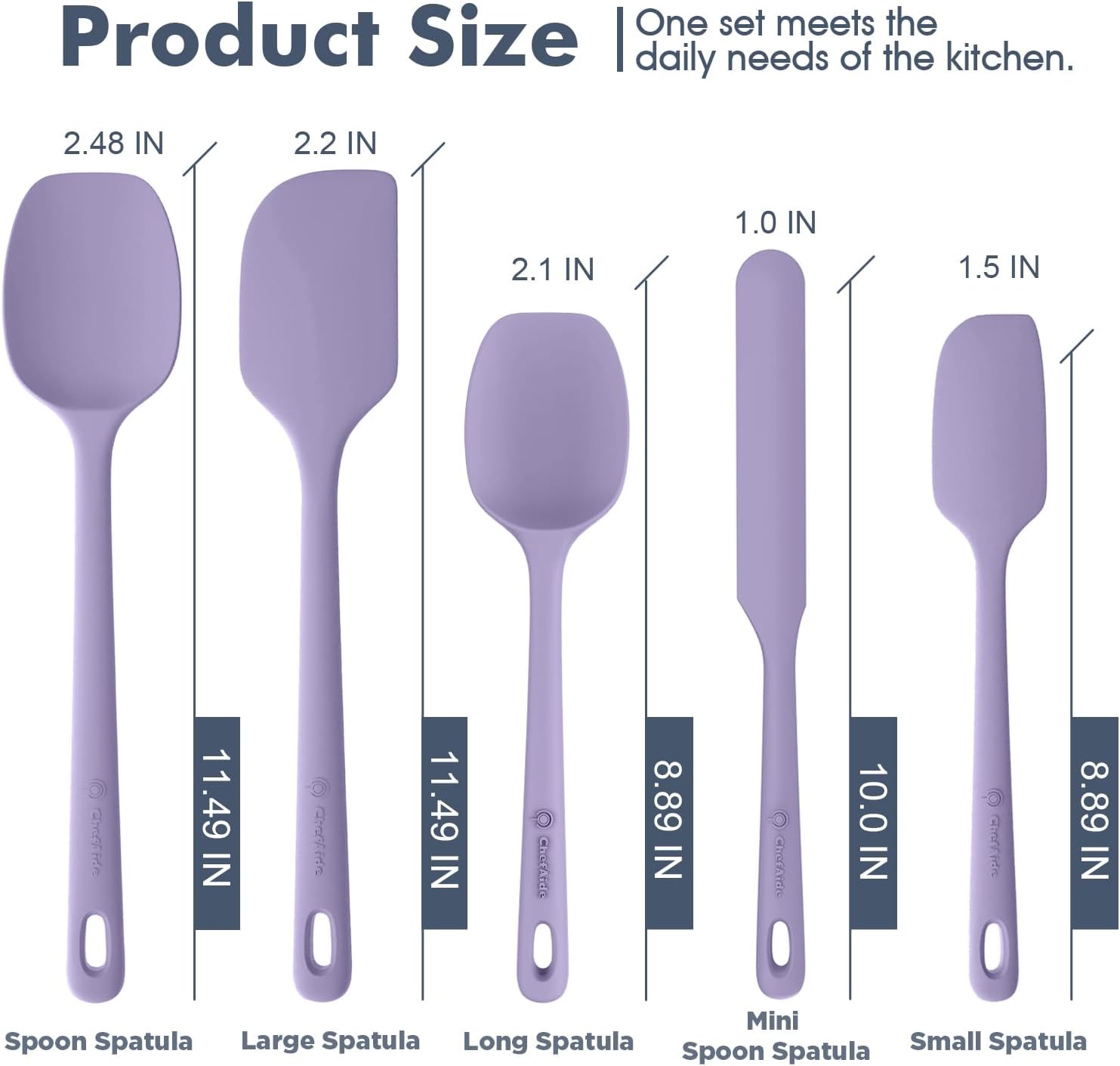5 Pieces Silicone Spatula Set, Food Grade Rubber Spatula, Upgrade Strong Handle with Ergonomic Grip, Heat Resistant Up to 600°F for Nonstick Cookware, Cooking Purple