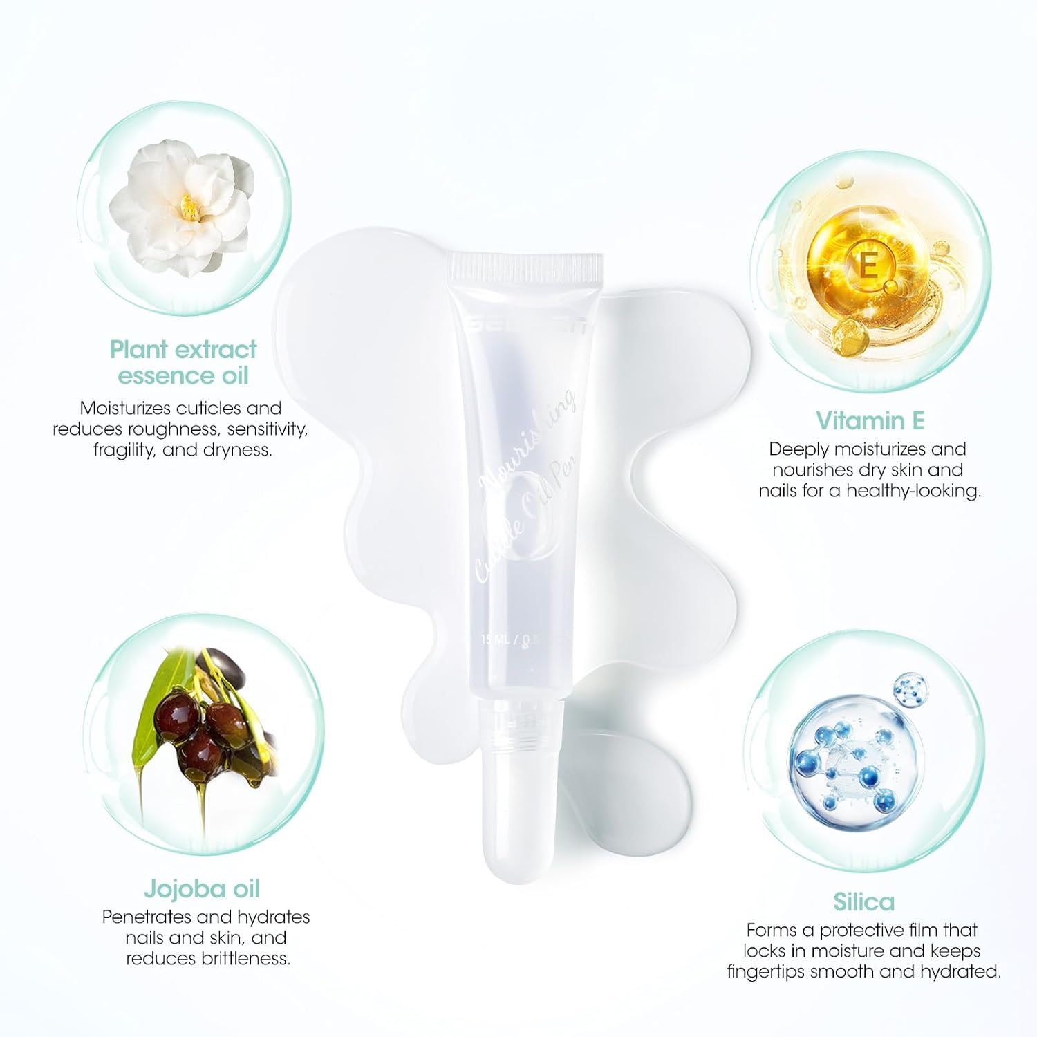 - ใ๐๐๐๐ฉ ๐๐ฒ๐๐ซ๐๐ญ๐ข๐จ๐ง & ๐๐ฎ๐ฑ๐ฎ๐ซ๐ฒ ๐๐จ๐ฎ๐ซ๐ข๐ฌ๐ก๐ฆ๐๐ง๐ญ ๐๐จ๐ซ ๐๐๐๐ฅ๐ญ๐ก๐ฒ-๐๐จ๐จ๐ค๐ข๐ง๐ ๐๐๐ข๐ฅ๐ฌใA luxurious blend of plant extract essence oil, Vitamin E, Jojoba oil, and silica. Softens dry, cracked cuticles, penetrates and hydrates breaking, thin nails while helping to maintain flexibility and reduce brittleness, and keeps fingertips smooth and hydrated.