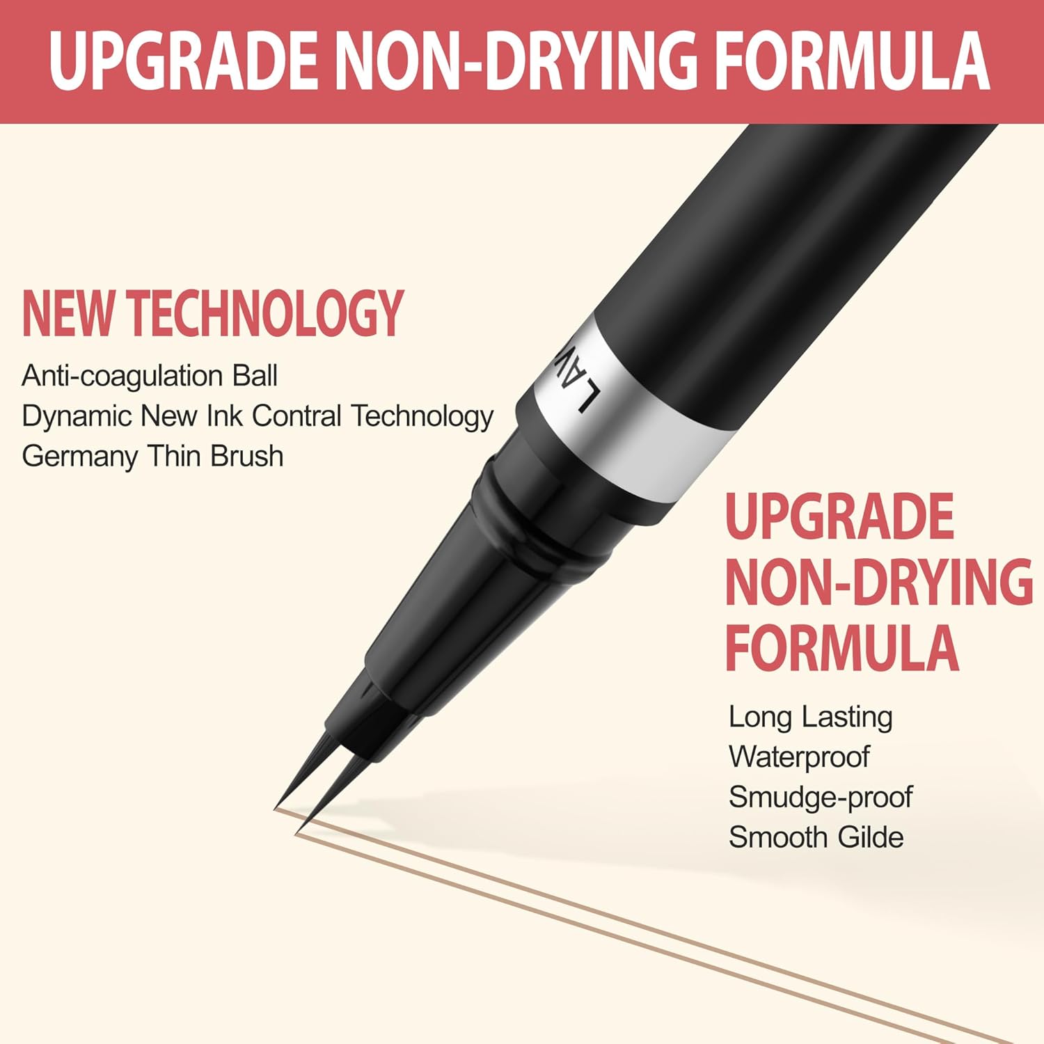 - Waterproof Liquid Eyeliner: LAVONE waterproof liquid eye liner ultra precise tip is flexible and easy to use. Every stroke is unbelievably fluid for a defined finish, the eyeliner pen is glides on smooth. The eyeliner pencil formula is long-lasting, smudge-proof and waterproof, keep in your brows up to 24hours.