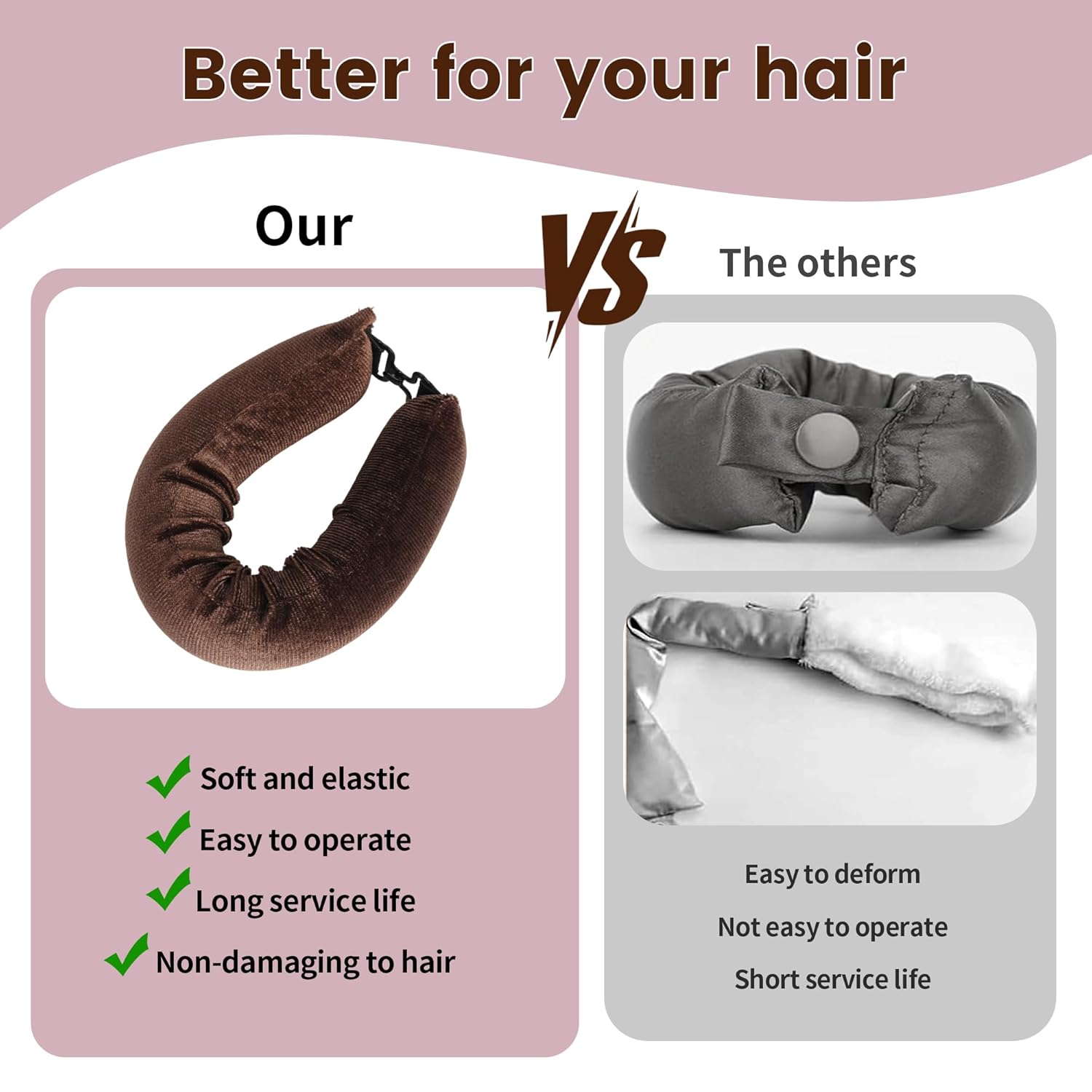 - 【HOW TO USE】 Our heatless hair curler do not rely on heated rollers, keep your hair slightly damp before use, wait for air-drying your hair after use to bring your own curling function, it is the most comfortable and easy styling tool for curly hair styling.