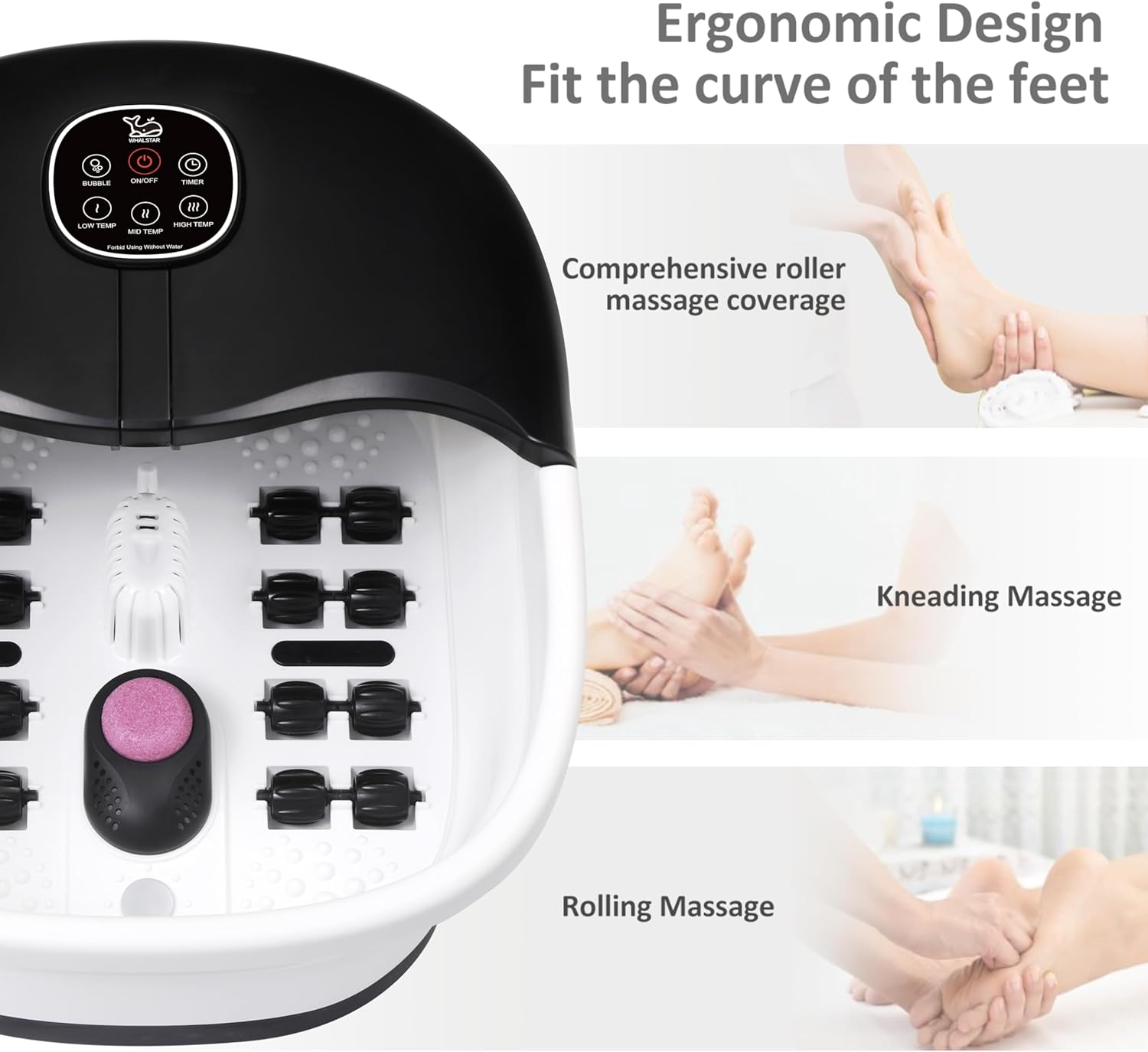 Foot Spa Bath Massager with Heat Bubbles and Vibration Massage and Jets, 16oz Tea Tree Oil Foot Soak Epsom Salt, WHALSTAR Collapsible Foot Bath Bucket With Infrared Fighting Infections & Remote