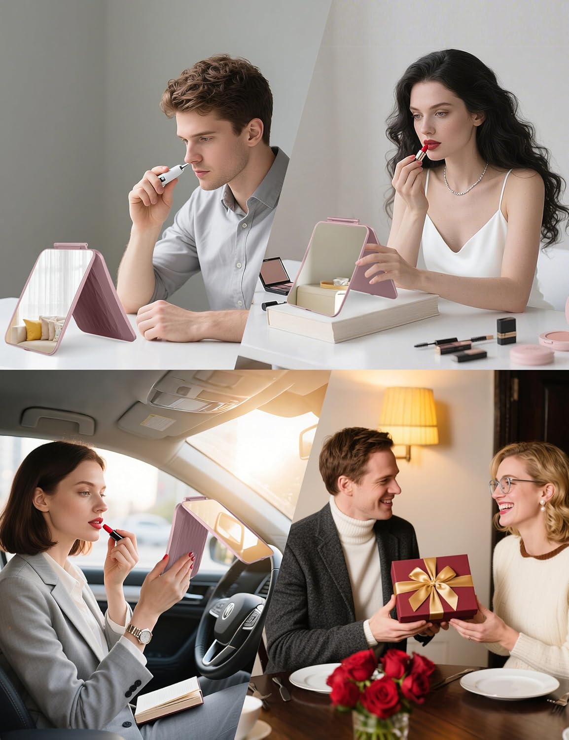 - 【Portable Travel Mirror & Lightweight and Portable】 The mirror itself weighs only 1.0 lbs, size: 8.5*6.4 inches, can be easily put into a bag or stored in a suitcase. It can be used for makeup application and touch-ups, suitable for commuting and 2-3 days business trips.